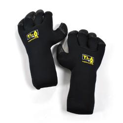 Пятипалые перчатки для тяжелых условий работы из 5 мм неопрена с манжетой анатомического кроя. Вся поверхность ладони покрыта кевларовым покрытием DuPont™ Kevlar®, пальцы усилены напылением из стекловолокна. Наружная сторона верхних фаланг пальцев дополнительно усилена кевларом. Внутренние теплоотражающие накладки из материала Ti-Ax Thermacote.